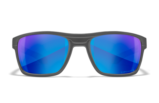 WX Twisted Matte Grey Frame Polarized Blue Mirror Lens